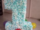 Цифра из гофрированной бумаги, высота 70 см. Цвет Тиффани, подойдёт как для мальчика так и для девочки. Если не знаете куда деть цифру после праздника) Можно взять в аренду, 1 день 250 рублей.